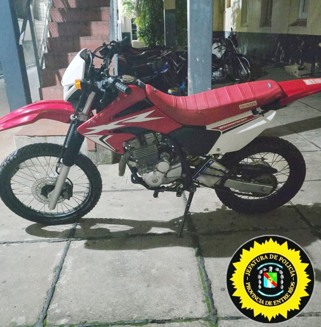 Este Sábado 19/04/2025, Personal de División Investigaciones e Inteligencia Criminal dio cumplimiento a orden de Allanamiento en relación a una denuncia realizada en la misma fecha, por el robo de una moto Honda “XR Tornado”.