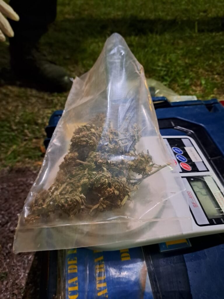 El Fiscal Dr. Mario Figueroa solicita la inmediata Requisa de los dos masculinos de 19 y 20 años de edad, logrando secuestrar (01) frasco de vidrio con flores de Marihuana varias, (03) envoltorios de nylon con flores de Marihuana, arrojando un peso total de 27 gramos, y un (01) picador de plástico.
